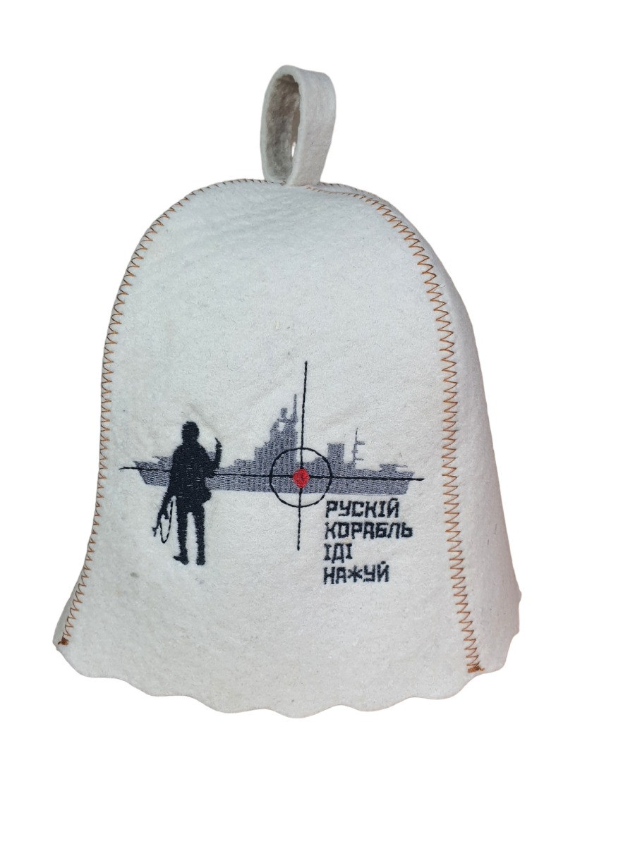 Банная шапка Luxyart "Рускій корабль іді на*уй" искусственный фетр белый (YT-305)