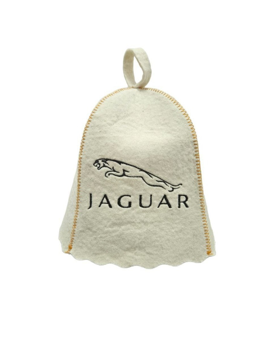 Банная шапка с вышивкой "Jaguar" изготовлена из натурального войлока. Цвет войлока белый.