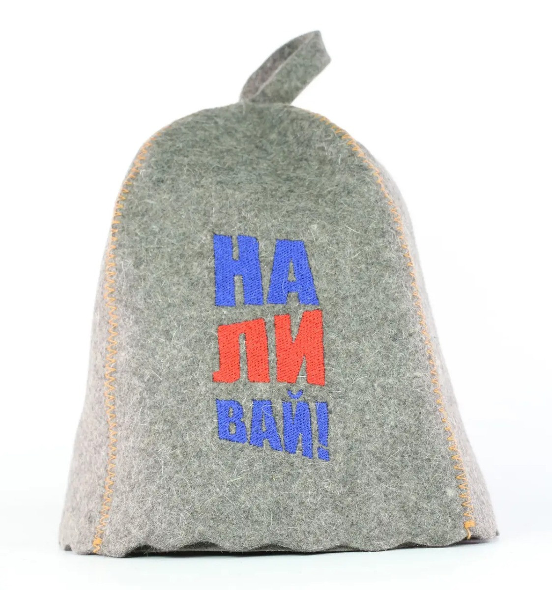 Банная шапка с вышивкой изготовлена из натурального войлока. Цвет войлока серый.