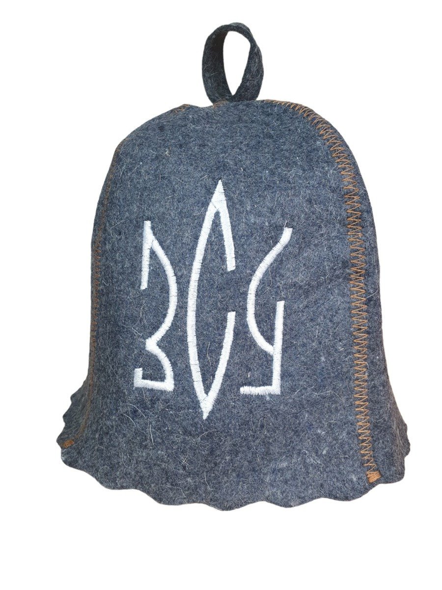 Банная шапка с вышивкой изготовлена из натурального войлока. Цвет войлока серый.