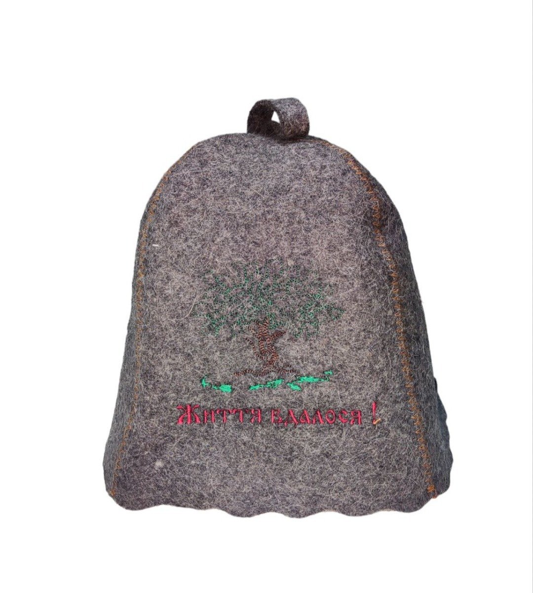 Банная шапка с вышивкой "Життя вдалося" изготовлена из натурального войлока. Цвет войлока серый.
