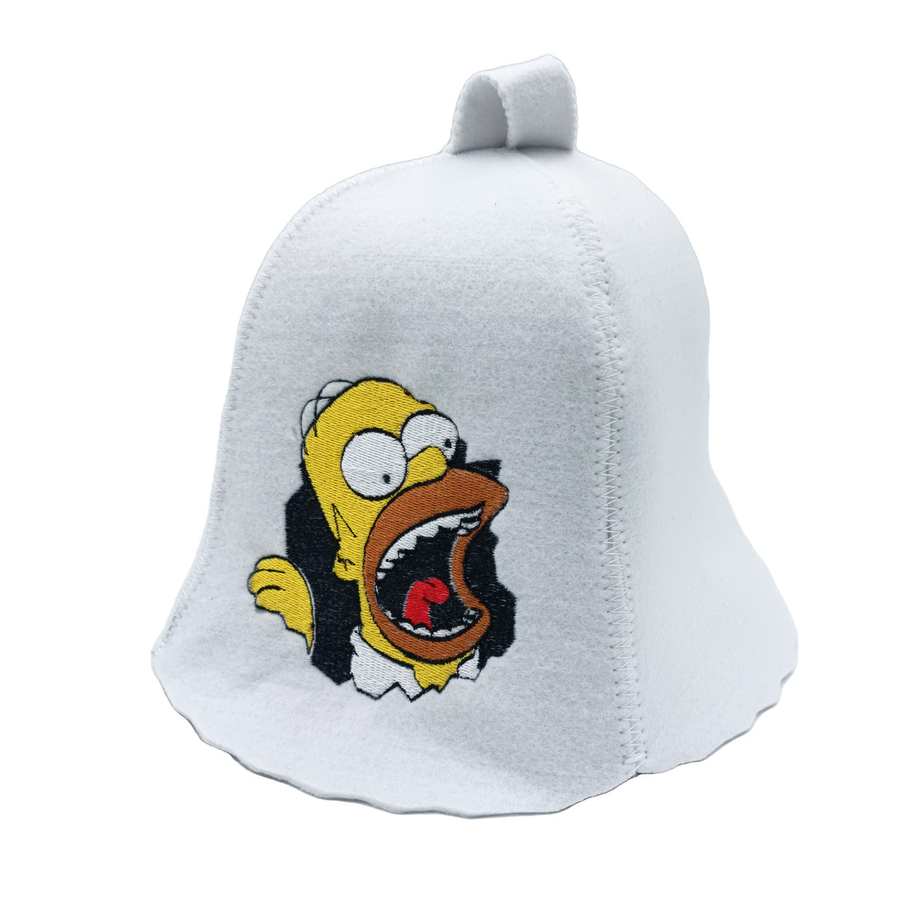 Банная шапка с вышивкой изготовлена из искусственного фетра. Цвет фетра белый.