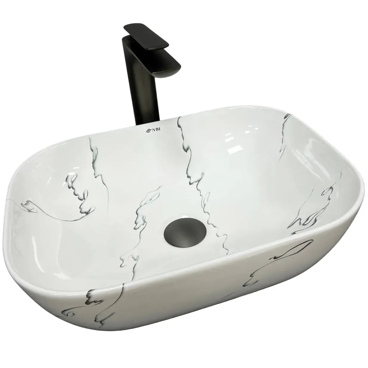 Описание Раковина накладна VBI Ravenna білий з чорним мармур VBI-011210