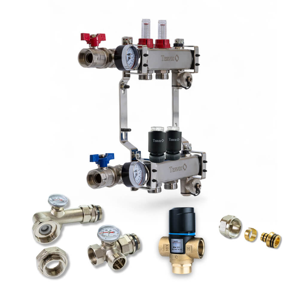 Описание Комплект обладнання для водяної теплої підлоги на 2 контури Tervix (521102)