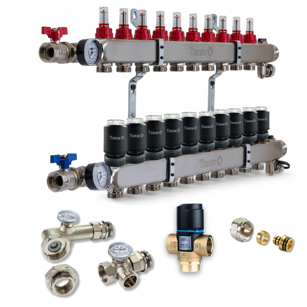Описание Комплект обладнання для водяної теплої підлоги на 10 контурів Tervix (521102)
