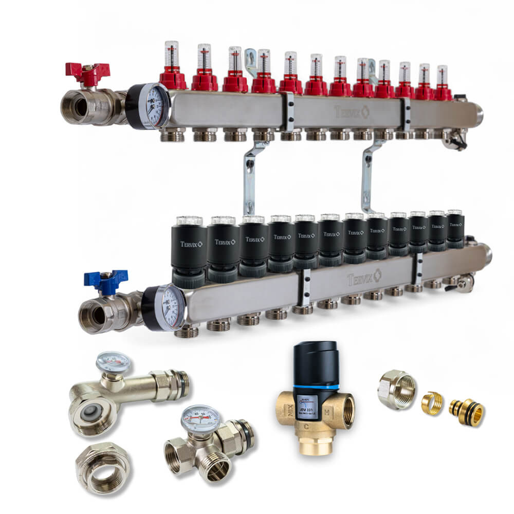 Описание Комплект обладнання для водяної теплої підлоги на 12 контурів Tervix (521102)