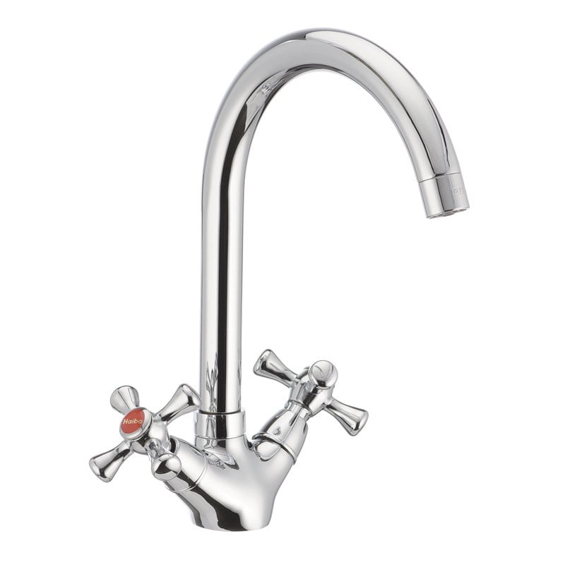 Классический смеситель для кухни HAIBA Smes 275 – оптимальный вариант, если вы хотите приобрести простое сантехническое устройство. Кран выполнен из латуни, поэтому отличается повышенной прочностью и стойкостью к коррозии. В качестве верхнего декоративного слоя используется хром. Покрытие придает смесителю соответствующий стальной цвет и является настоящей находкой для тех, у кого кухня имеет традиционный стиль оформления.
