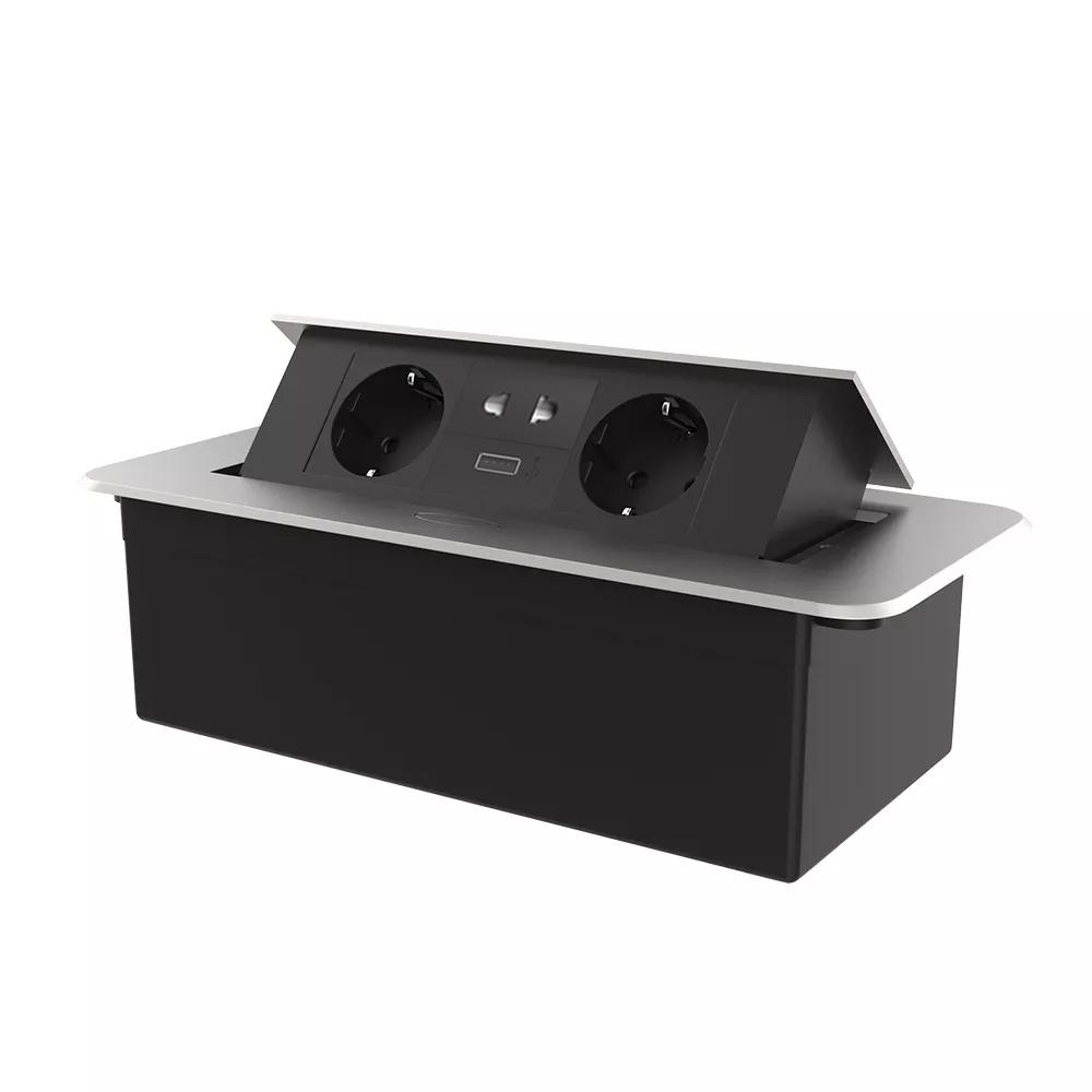 Удобство и стиль в вашем интерьере Выдвижная мебельная тройная розетка благодаря своему стильному дизайну, отлично впишется в любой интерьер. Это отличное решение для установки на рабочих местах, в конференц-залах или на кухне, где вы хотите иметь удобный доступ к розеткам или электрическим устройствам, но при этом сэкономить место. Мебельная розетка имеет высокий степень защиты IP40, что надежно защищает ее от пыли и мелких частиц. Врезная розетка изготовлена из прочного алюминия и покрыта специальной краской, что обеспечивает долговечность и надежность. Встроенная розетка плавно открывается после нажатия кнопки, что обеспечивает комфорт в использовании. Вы сможете удобно подключать электроприборы, не теряя при этом важного рабочего пространства. В общем, выдвижной розеточный блок Livolo - это инновационный и практичный вариант, который добавит функциональности и удобства вашему помещению. Вы получите доступ к электрическим источникам без лишних усилий, сохраняя при этом важное пространство для работы и творчества. Выходные параметры USB: USB Type A: 5V/2.1A Комплектация Механизм розетка USB-A Livolo Механизм силовая розетка с заземлением Livolo 2 шт. Пустой выдвижной розеточный люк на 3 модуля Livolo Элегантный внешний вид и универсальный стиль Чистые линии розетки, безупречная форма и тщательно продуманный дизайн придают ей изящество и привлекательность. Благодаря своей универсальности, розетка гармонично впишется в любой интерьер, независимо от стиля. Будь то классический, современный, минималистичный или эклектичный дизайн - этот элегантный изделие всегда будет выглядеть безупречно. Универсальное и гибкое решение Вы можете самостоятельно выбирать модули розеток, которые необходимы для вашего конкретного помещения или рабочего места. Например, если вам нужны обычные электрические розетки для подключения бытовых приборов, то вы можете установить их в блок. Или если вы работаете с компьютером и нужны компьютерные разъемы, то также можете выбрать соответствующие модули. Простой и стильный дизайн Мебельная розетка имеет классический и элегантный вид, что придает помещению особой достоинства и шарма. Ее сдержанный дизайн впечатляет простотой и стильностью, создавая атмосферу гармонии и хорошего вкуса. Оптимизация рабочего пространства Благодаря выдвижному дизайну, мебельная розетка может легко исчезнуть со стола или столешницы, когда ее не используют. Это позволяет эффективно использовать пространство и освободить его от лишних розеток, которые уже не нужны. Удобное и логичное расположение Каждая розетка расположена в удобном месте, обеспечивая удобный доступ для подключения устройств. Уникальный выдвижной дизайн розетки позволяет с легкостью закрыть ненужные розетки. Вам не нужно будет волноваться о лишних кабелях или розетках, которые занимают место. Просто закройте розетку после использования, и ваше рабочее пространство будет выглядеть организованно и заранее подготовленным для следующего задания. Габаритные размеры Мебельная розетка имеет внешние размеры 265х118 мм, с глубиной всего 70 мм. Эти компактные размеры позволяют легко вписать розетку в любой мебельный дизайн без лишнего занятия пространства. Мебельный люк и его монтажная коробка. Монтажные размеры Размер монтажной коробки для мебельного люка Livolo. Установк