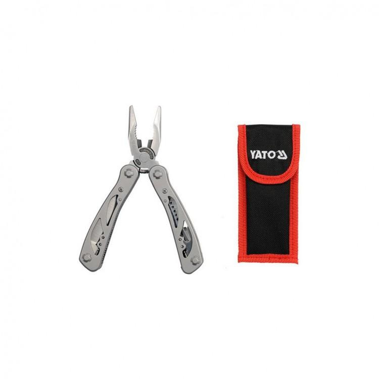 Мультитул YATO YT-76043 - универсальный складной инструмент с множеством функций, что является незаменимым помощником при поведении различных работ в домашнем хозяйстве, в гараже, на даче и на пикнике в лесу. Изготовлен из качественной нержавеющей стали. Поставляется в комплекте с удобным чехлом. Рекомендуется для туристов, рыбаков, охотников! УНИВЕРСАЛЬНЫЙ ИНСТРУМЕНТ ВКЛЮЧАЕТ В СЕБЯ: Плоскогубцы Нож Плоская отвертка Крестовая отвертка Консервный нож Скребок Пилка Резак для провода Открывалка для бутылок ХАРАКТЕРИСТИКИ МУЛЬТИТУЛА YATO YT-76043 Длина – 160 мм Материал – нержавеющая сталь Вес – 0.389 кг