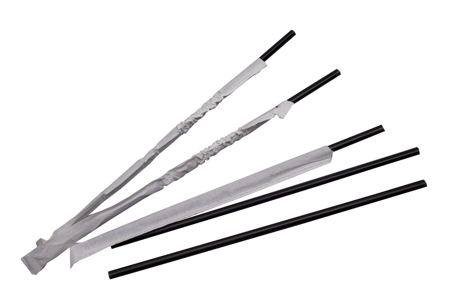 Трубочки для коктейля Promaster прямые в индивидуальной бумажной упаковке 210 мм 200 шт Черные (74080)