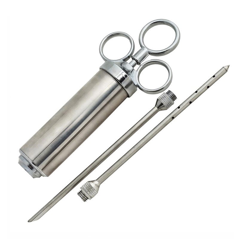 Шприц-маринатор Lesko для маринования мяса. Думаете как провести свой вечер с семьей? Что может быть лучше вкусно приготовленного ужина, проведенного за одним столом в веселой компании? А если у вас намечаются праздники и вы хотите удивить своих гостей чем-то интересным, тогда данный инструмент станет неотъемлемой частью на вашей кухне. Просоленное и промаринованное по всей толщине мясо, приготовленное крупным куском, путем запекания или горячего копчения вынудит забыть о шашлыке, как о недоразумении. Маринатор для мяса из нержавеющей стали Шприц изготовлен из нержавеющей стали, имеет в комплекте три иглы. Одна имеет отверстия на боковых поверхностях для равномерной пропитки продукта маринадом или соусом по всей толщине. Инструменты очень прочные и надежные, иглы способны проколоть мясо любой жесткости, в том числе и дичь. Известные повара по всему миру знают, как правильный маринад может преобразовать куриные грудки, индейки и многое другое в деликатесы. Правильный маринад привносит новый вкус и внешний вид вашему мясу и делает каждый укус менее сухим и полным по вкусу. Вы можете приготовить все от бифштексов до индейки и получить в итоге ресторанное блюдо. С данным кухонным инструментом вы сможете просто отвинчивать и чистить иглы, или положить их в посудомоечную машину для быстрого мытья