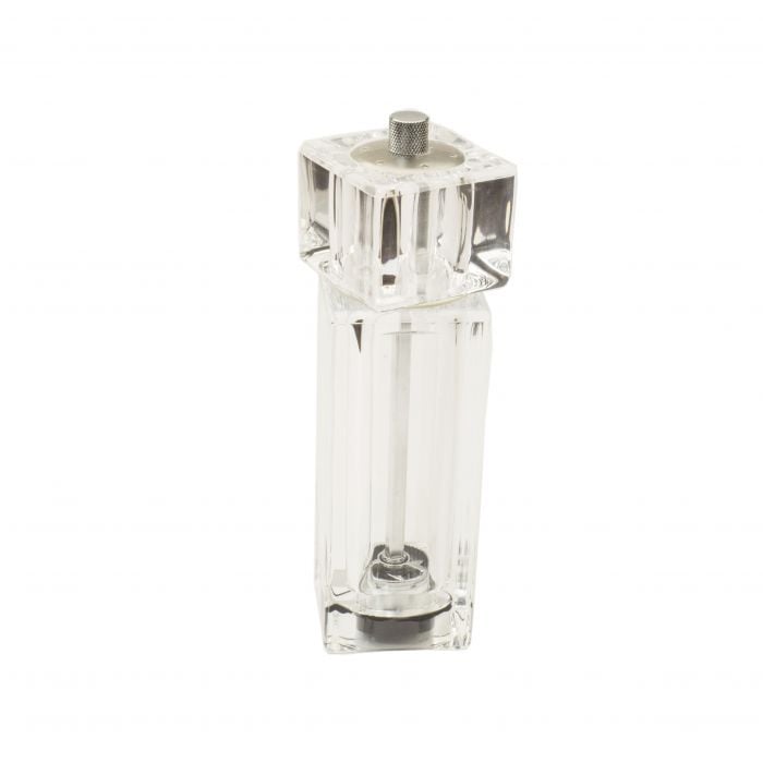 Мельница прозрачного цвета. Используется для кристаллической соли и перца горошком. Превращает специи в порошок. Размеры: 15 см.