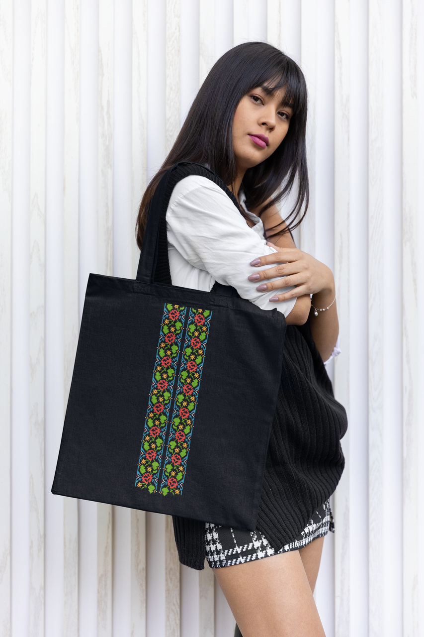 Эко-сумка шоппер с патриотическим принтом "Украинский цветочный орнамент" Кавун Бежевый