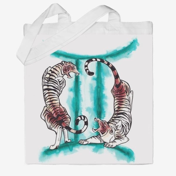 Описание Эко-сумка шоппер с принтом Тигры-близнецы Кавун Бежевый