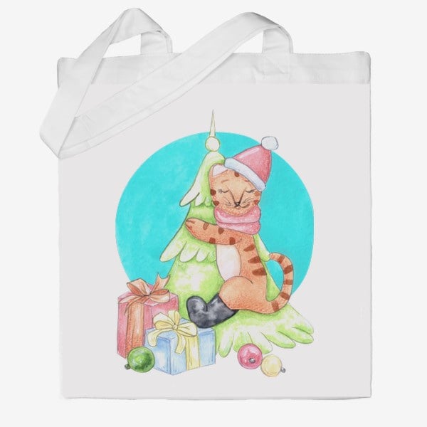 Эко-сумка шоппер с принтом Тигр Кавун Бежевый