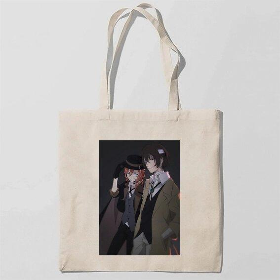 Эко-сумка шоппер с принтом Bungou Stray Dogs - Бродячие псы Кавун Бежевый