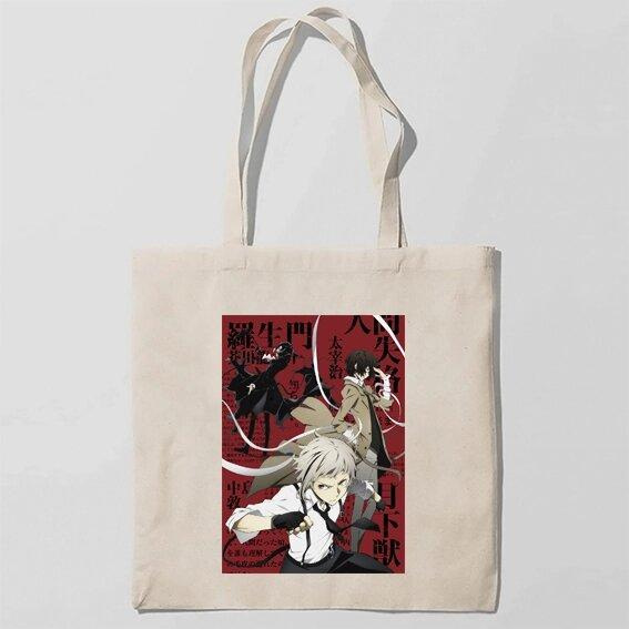 Эко-сумка шоппер с принтом Bungou Stray Dogs - Бродячие псы Кавун Бежевый