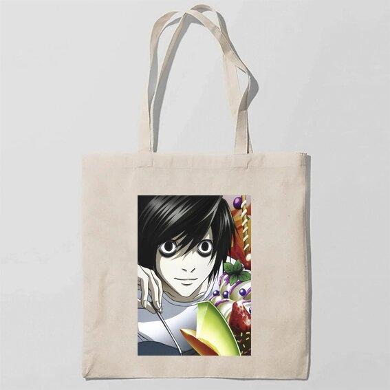 Эко-сумка шоппер с принтом Death Note - Тетрадь смерти 12 Кавун Бежевый