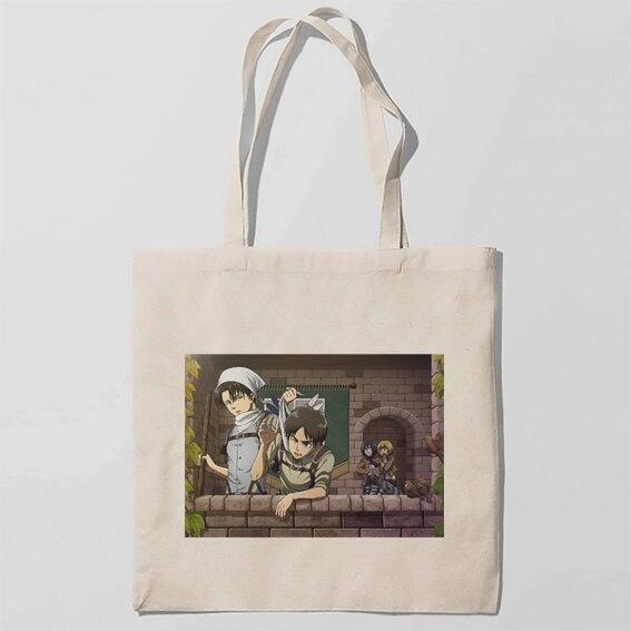 Эко-сумка шоппер с принтом Attack on Titan - Вторжение титанов 10 Кавун Бежевый