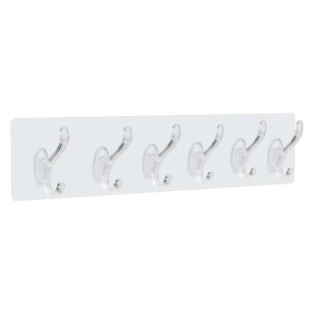 Описание Вешалка самоклеящаяся настенная на 6 крючков Hom крючки для ванной комнаты и кухни прозрачный (GT050857)