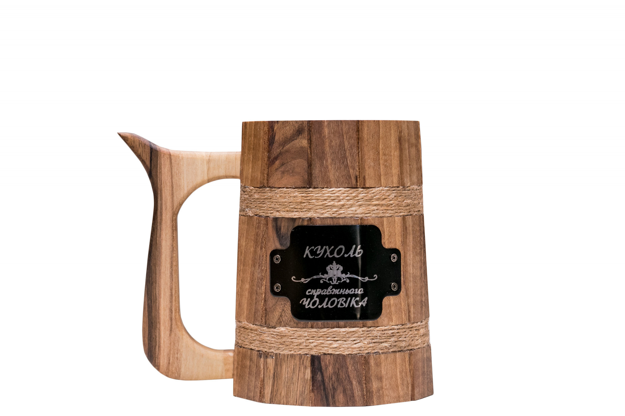 Деревянный сегментный (состоит из сегментов, ручки и дна) бокал EcoWalnut конусной формы для холодных напитков с металлической бляхой. При употреблении хмельных напитков из деревянного бокала (в отличии от стеклянного) пенка не падает очень длительный период времени. Стук деревянного бокала несомненно куда более приятен и процесс распития пива превращается в веселую и легендарную затею. Кроме этого - бокал невозможно разбить.