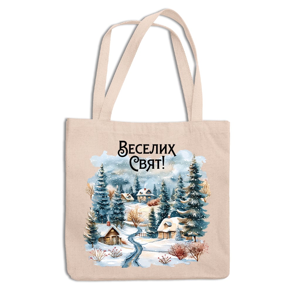 Эко-сумка с новогодним принтом Кавун Снеговик 38х42х10 см Разноцветный ЕСШ001415