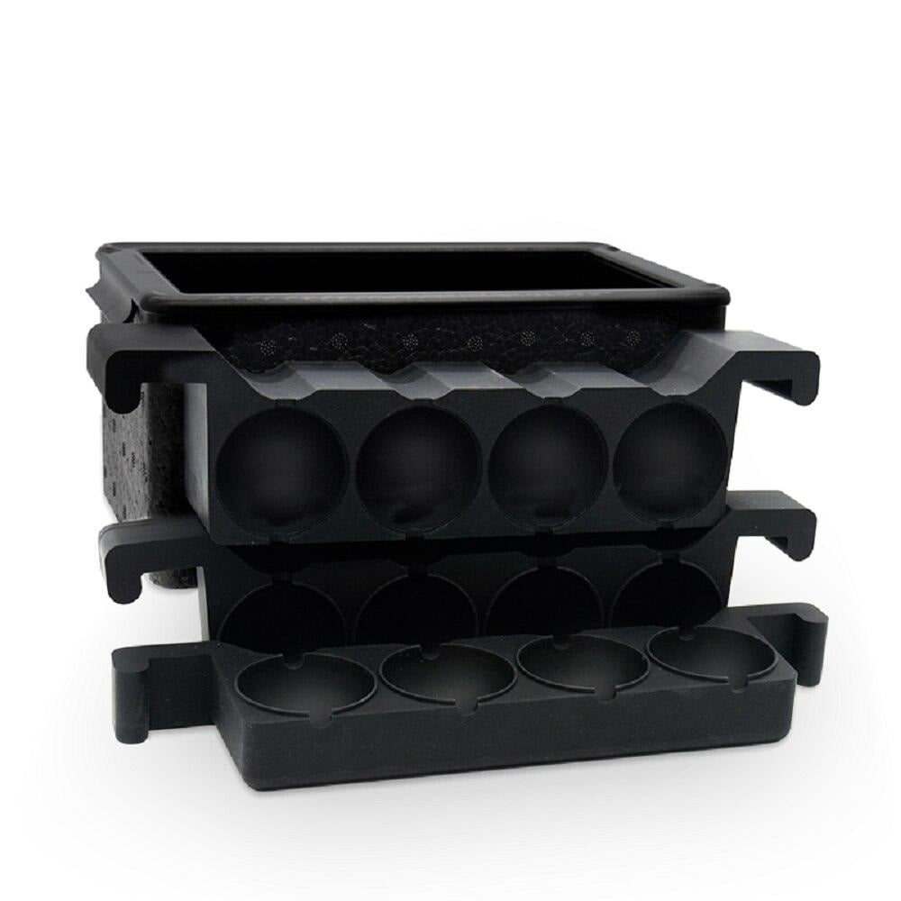 Форма для создания кристально прозрачных шаров льда Вместимость 8 отверстий, то есть вы сможете получить 8 готовых сферических глубок льда. Диаметр льда – 5 см. Длина контейнера 16 см, ширина 29.5 см, высота – 14.5 см. Инструкция по использованию: 0. При первом использовании промойте проточной водой (можно теплой, можно с мылом). Хотя формы для льда хорошо упакованы, мы не можем гарантировать отсутствие пыли у дороги, когда заказ направлялся в ваш дом или почтовое отделение. 1. Выньте силиконовую форму из пластиковой. 2. Заполните пластиковую форму горячей или теплой водой до отметки сбоку внутри. Можно заполнить чуть больше, чем до отметки, ничего страшного, вода просто выльется наружу со временем. 3. Медленно погрузить силиконовую форму в пластиковую, чтобы вода заняла все пустоты внутри силиконовой формы и вытолкнула воздух. 4. Поместите форму у морозилки на 24-30 часов, но не больше. Производитель советует примерно на 24 часа. С течением времени вы подберете оптимальный срок заморозки для вашей морозилки. Температура в каждой морозильной камере может быть разной. Попытайтесь найти лучшую температуру и час для вашей морозильной камеры. 5. Достаньте из морозилки. Чтобы вытащить силиконовую форму из пластиковой, хорошо потяните сначала за одну ручку силиконовой формы, затем за другую, затем за обе. 6. Когда вы получите форму, разъедините ее на две части и положите лед в бокал или в пакет для хранения в морозилке. Если вы положили лед в бокал, дайте ему минутку, чтобы немного нагреться. Это поможет избежать трескания, когда вы будете доливать жидкости в бокал Лед и вода, сохранившиеся на дне пластиковой формы, можно нагреть и использовать снова для замораживания новых порций льда. Нет разницы, какую воду вы используете, важно чтобы вода замерзала медленно, и "сверху вниз", поэтому и была создана эта форма