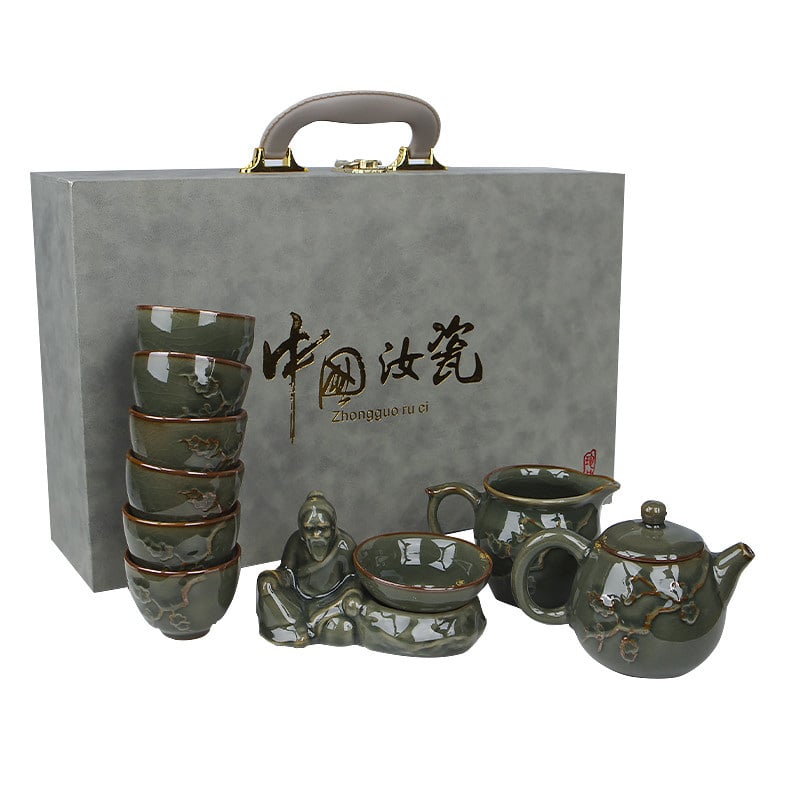 Почувствуйте магию вкуса! Этот изысканный чайный сервиз идеально подходит для традиционного заваривания чая и создания атмосферы гармонии и спокойствия. Изготовлен из высококачественной керамики, он сочетает в себе элегантный дизайн и функциональность. Благодаря использованию традиционной техники и посуды для заваривания чая, вы получаете возможность открывать для себя по-настоящему новые вкусы и их сочетания. Что входит в этот традиционный чайный набор? Чайник с крышкой Подставка с фигуркой Чаши Чайный кувшин (чахай) Основные преимущества: Традиционный дизайн - керамика с изящными узорами, что добавляет роскоши Функциональность – удобный чайник для эффективного заваривания чая Эргономичные чашки – комфортно лежат в руке и сохраняют аромат напитка Идеально для чайных церемоний – отличный выбор для ценителей восточных традиций Этот сервиз - отличный подарок для любителей чая и утонченной посуды. Создайте свою уникальную чайную атмосферу.