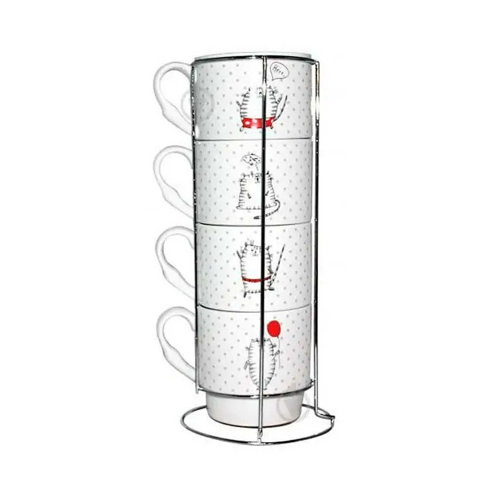 Набор чашек Cat story (4х320 мл) на металлической стойке от торговой марки S&T идеально подходит для повседневного использования. Чашки изготовлены из экологически чистого, качественного фарфора белого цвета с рисунками кошек.