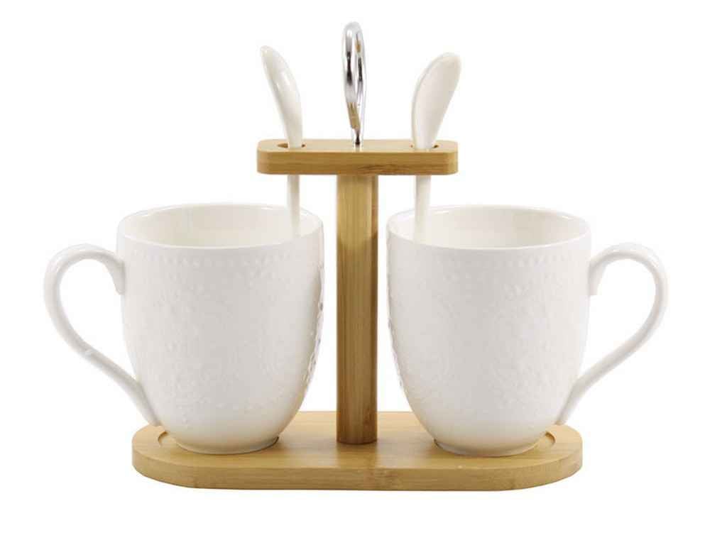 Набор чашек INTEROS C PJ03395 на деревянной подставке 5 предметов 2х300 мл Белый (800360)