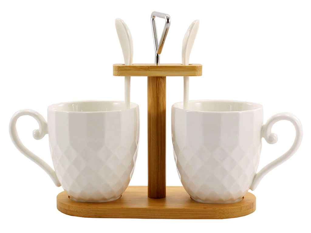 Набор чашек INTEROS C PJ03392 на деревянной подставке 5 предметов 2х300 мл Белый (716313)