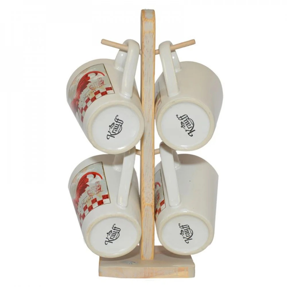 Набор чашек INTEROS C PJ03391 на деревянной подставке 5 предметов 2х300 мл Белый (716326)
