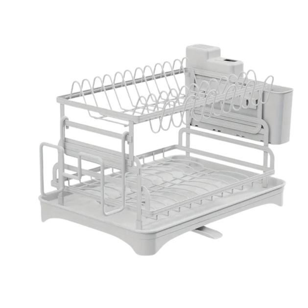 Двухъярусная сушилка для посуды Urbankit с водоотливом и органайзером 42х30х29,5 см Белый (2222-368)