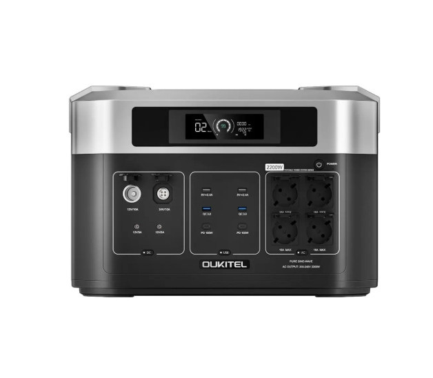 Портативная зарядная станция OUKITEL BP2000 PRO - это более мощная версия стандартной BP2000 с функцией ИБП, номинальной мощностью 3600 Вт и пиковой мощностью 7200 Вт, работает на выходном напряжении 200-240 В и генерирует чистую синусоиду.