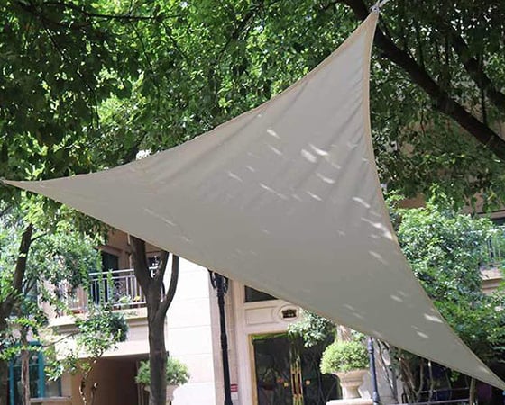 Теневые тенты в форме треугольника с использованием материала - высокотехнологичная ткань с водостойким покрытием Оксфорд.