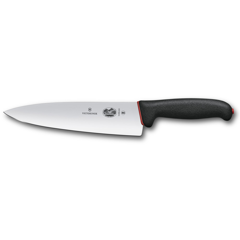 Нож шеф-повара Victorinox Dual Grip с широким лезвием 20 см и двухкомпонентной рукоятью. Большой специализированный нож из линейки Dual Grip для шеф-поваров на больших ресторанных кухнях, работников пищевых производств и мясоперерабатывающих цехов. Идеально подходит для разделки и нарезки всех видов мяса (как сырого, так и готового для подачи на стол). Профессиональный инструмент для использования в домашних и промышленных масштабах.