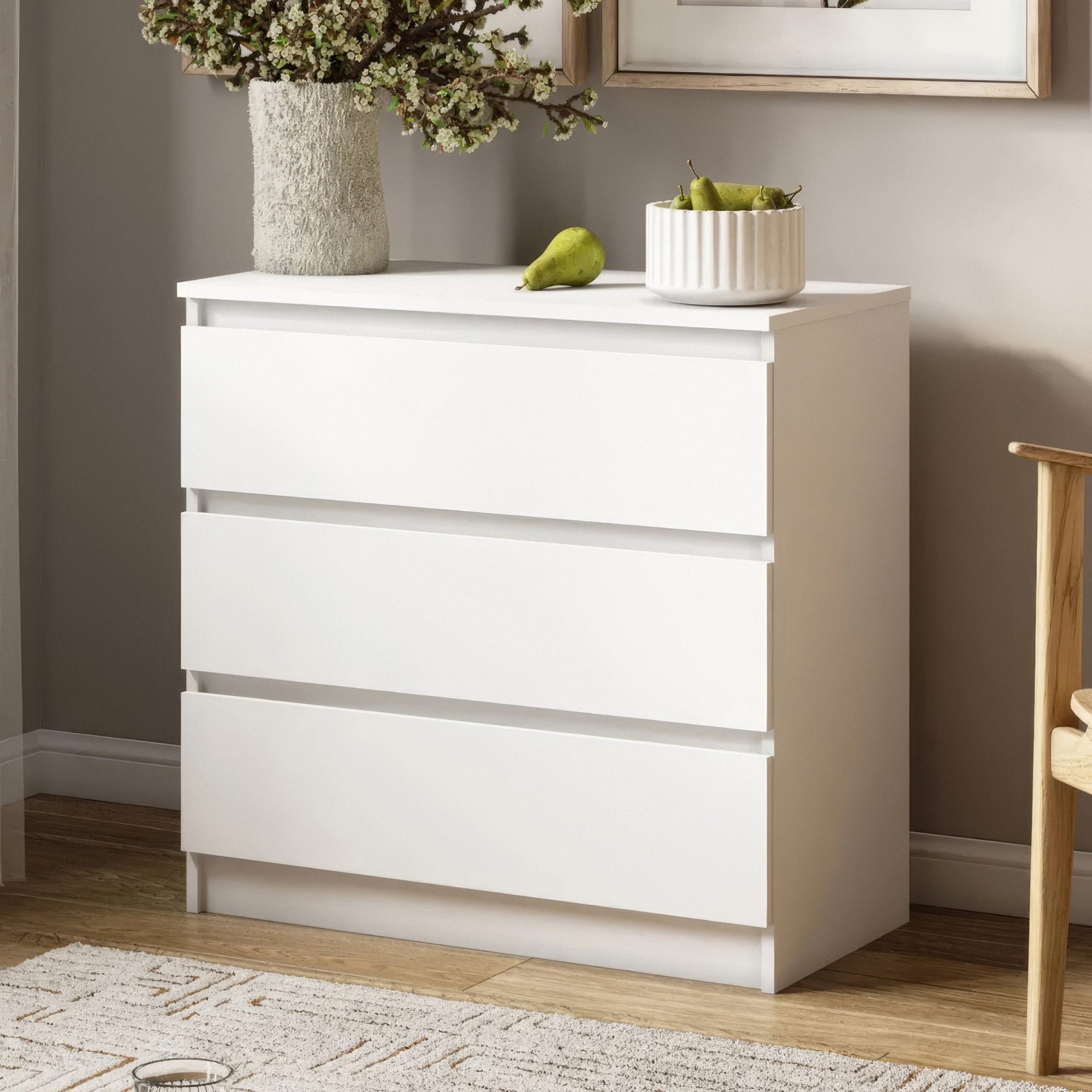 Комод на 3 ящика без ручек FT-214 800х400х755 мм Белый, Нимфея Альба (8885766)