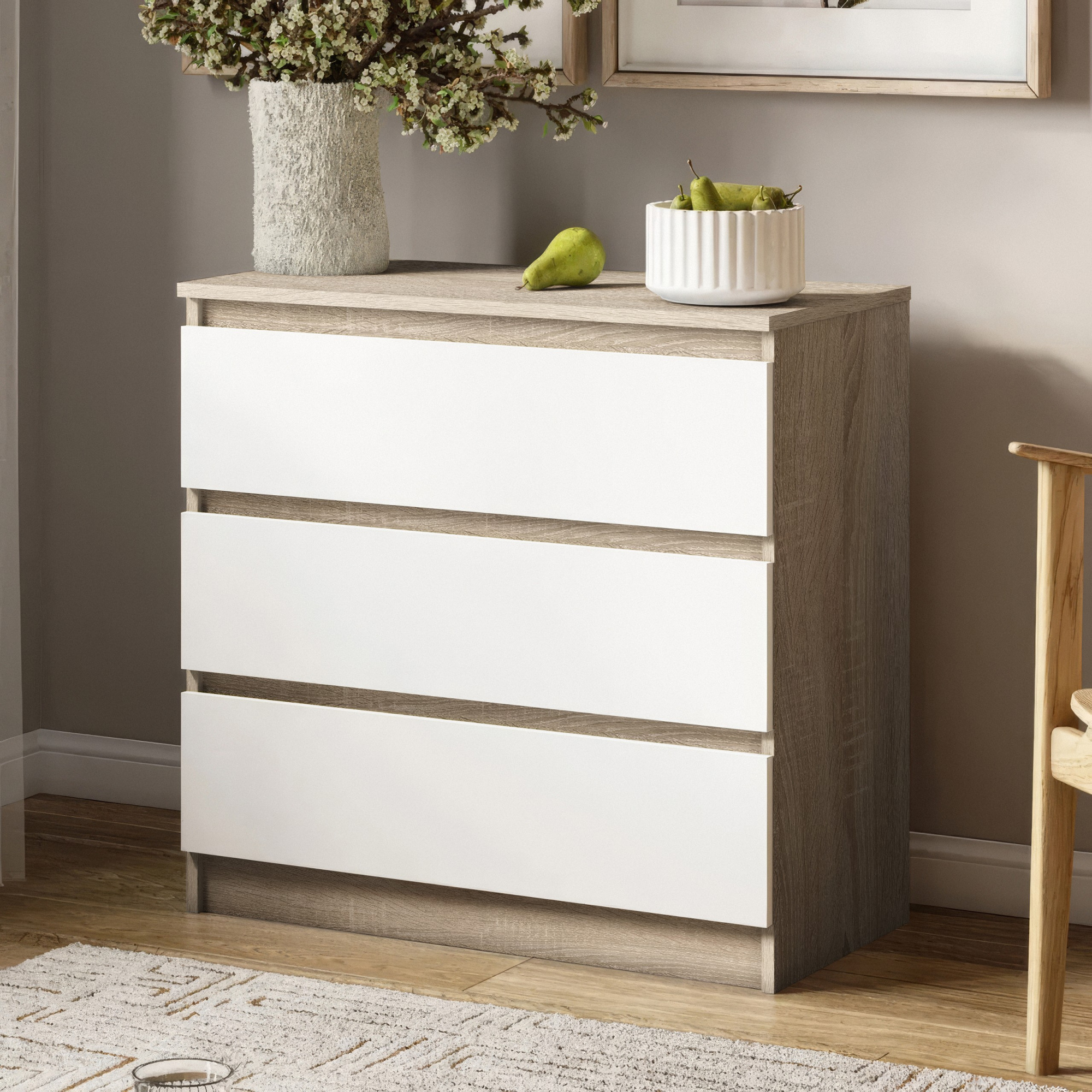Комод на 3 ящика без ручек FT-214 800х400х755 мм Дуб Сонома-Белый, Нимфея Альба (8885855)