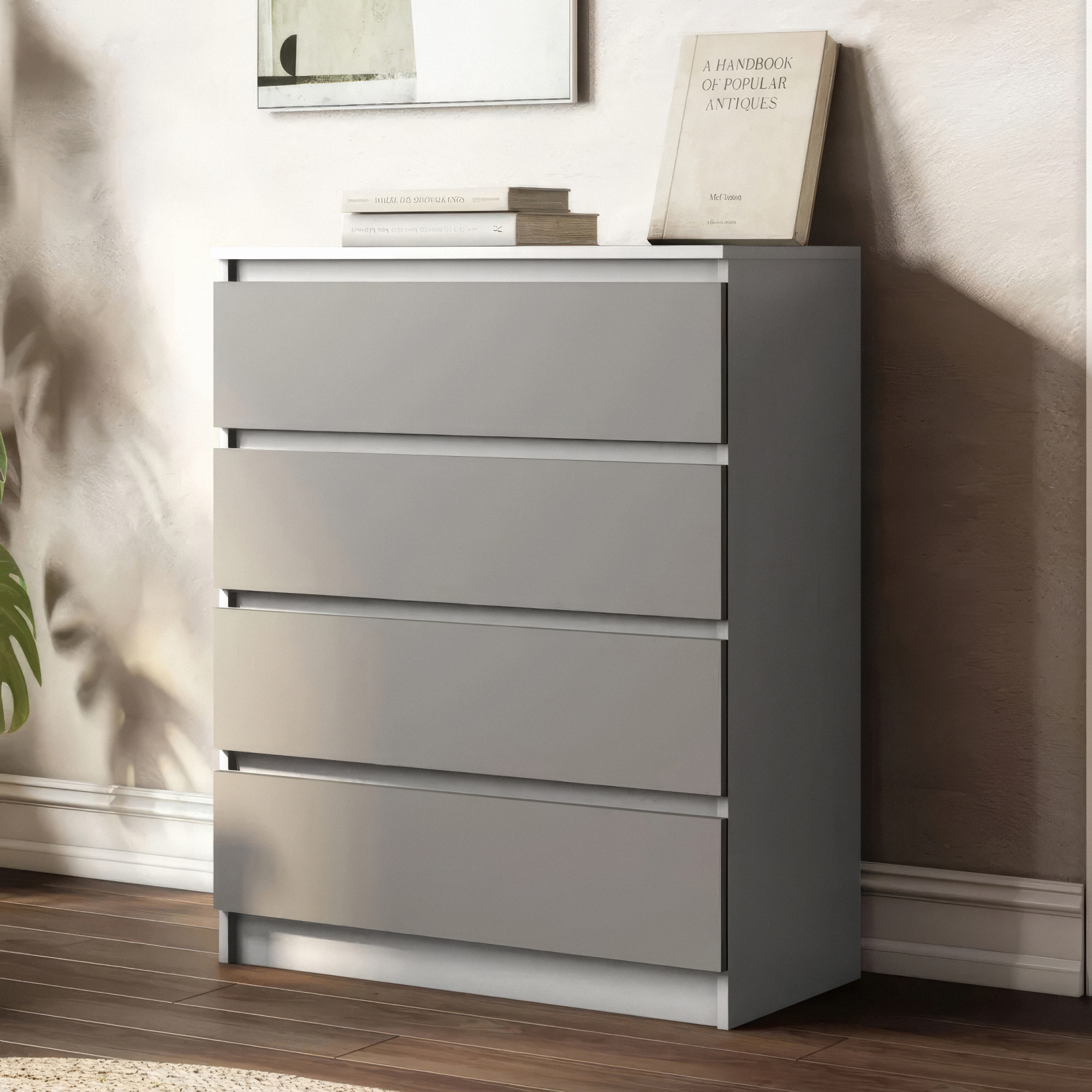 Комод на 4 ящика без ручек NT-215 800х400х1000 мм Белый, Нимфея Альба-Антрацит (13844003)