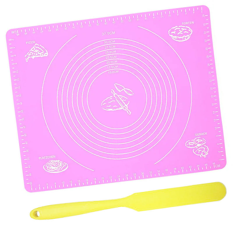 Силиконовый коврик для раскатки теста + кухонная лопатка No brand Пищевой силикон, антипригарная поверхность, устойчивость к высоким температурам (до +230°C). Коврик имеет точную разметку по окружности, а также шкалу в сантиметрах и дюймах по краям. Лопатка — универсальный кухонный инструмент: для замеса теста, вымешивания, перемешивания ингредиентов и нанесения крема.