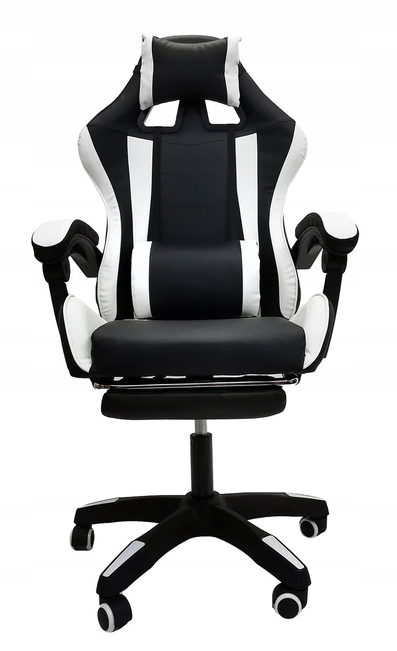 Современное эргономичное игровое кресло является незаменимым элементом комнаты каждого геймера. Благодаря характерному контурному дизайну, кресло обеспечивает полный комфорт во время длительных игр, обучения или работы. Использование экологичной кожи и мягкого, губчатого наполнителя обеспечивает непревзойденный комфорт кресла, а дополнительные подушки позволяют поддерживать правильную осанку во время игры. Благодаря системе плавных рычагов вы можете регулировать как высоту, так и угол наклона спинки, что позволяет регулировать ее в соответствии с вашими предпочтениями. ОСНОВНЫЕ ХАРАКТЕРИСТИКИ: Внимание к деталям Гладкая, регулируемая спинка Современный, дизайнерский вид Две эргономичные подушки Вращение на 360° Комфортная и рельефная форма, помогающая поддерживать здоровое положение Колеса для удобного перемещения Массажер в нижней подушке Сменная подножка. ФУНКЦИЯ МАССАЖА В ПОДУШКЕ – специально разработанная подушка с массажером (USB) обеспечивает облегчение и расслабление во время длительных сеансов. Не позволяйте боли в спине мешать вам играть! СПЕЦИФИКАЦИЯ: Материал: экокожа, пенополиэтилен, металл Количество подушек: 2 Подставка для ног: да Регулировка высоты: есть Регулировка спинки: есть Макс. погрузка: 120 кг. Размер спинки: 55 х 75 см. Размер сиденья: 51 х 47 см. Высота подлокотника: 26 см Расстояние между подлокотниками: 64 см. Длина подлокотника: 35 см. Расстояние до подлокотника: 47 см. Высота сиденья: 40-50 см. Размеры подножки: 31 х 21 см. Высота: 114 – 123 см.