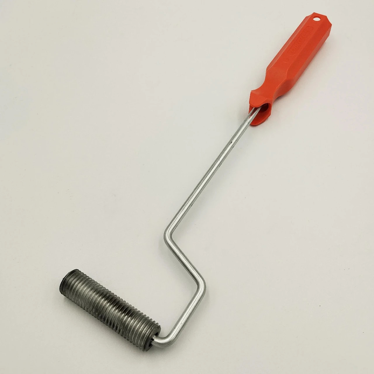 Профессиональный стальной валик, предназначенный для равномерного распределения смолы и эффективного удаления воздушных пузырьков при ламинировании стеклопластика. Благодаря прочному корпусу и вертикальным канавкам инструмент обеспечивает плотное уплотнение волокон и стабильный результат при длительном использовании.