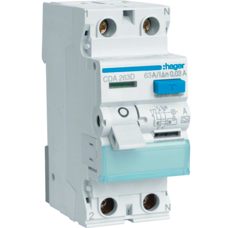 Описание Устройство защитного отключения Hager CDA263D 63A 30мА 6кА тип A 2P
