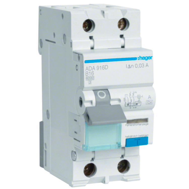 Характеристики товара Устройство защитного отключения Hager ADA916D B 16A 1P+N 6кА 30мА