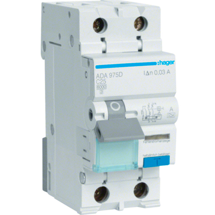 Описание Устройство защитного отключения Hager ADA975D C 25A 1P+N 6кА 30мА