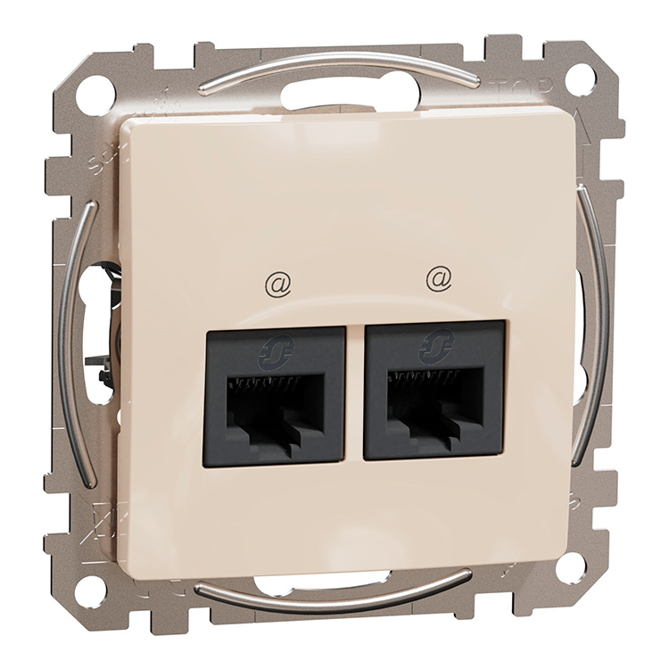 Описание Двойная компьютерная розетка Schneider Electric Sedna Design & Elements RJ45 кат. 5е UTP бежевая (SDD112452)