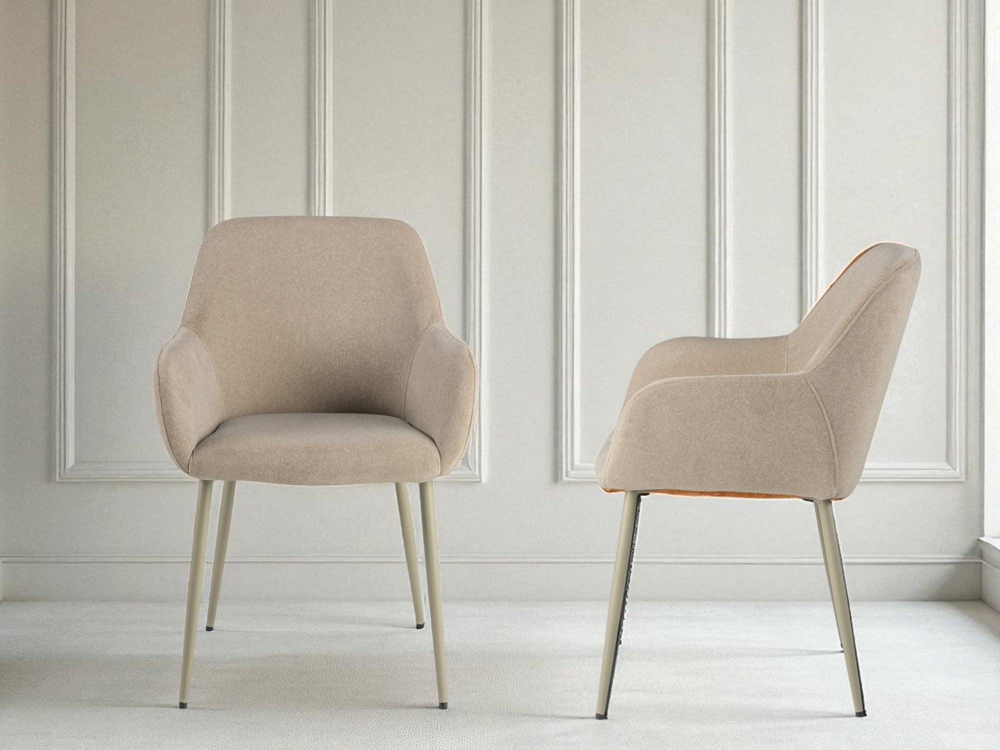 Комплект обеденных стульев Терра М-220 (2 шт.) с подлокотниками, мохер Устричный/белый, для кухни, столовой, 830×550×580 мм