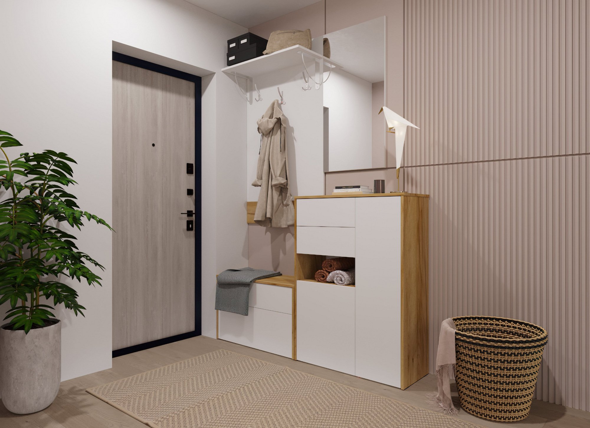 LUXE STUDIO — це найбільший виробник надійних корпусних меблів високої якості. Використовуючи новітні технології і сучасні матеріали нами розроблені десятки гармонійних дизайнів корпусних меблів, шаф і шаф-купе, серед яких ви, без сумніву, зможете підібрати варіант, який стане дійсною прикрасою саме вашого інтер'єру. Передпокій - це перше, що ми бачимо, увійшовши в будинок. Саме ця частина житла створює перше враження про нього і його господарів. Акуратний передпокій, в якому немає зайвих речей, а взуття та верхній одяг на своїх місцях, завжди виглядає гідно і створює відчуття комфорту. Narine (Нарiн)- фнукціональний і компактний комплект для передпокою з м'яким лаконічним дизайном. У цьому передпокої є все необхідне для акуратного розміщення верхнього одягу та інших речей. Передпокій Narine Характеристики та розміри: Розміри (ШхГхВ): 1600х350х2290 мм Розпашні двері - 1 шт Висувна шухляда - 1 шт Дверi відкидні 1 шт Полиці - 4 штГачки для одягу - 3 шт Мікроліфт для одягу Ручки меблеві, покриття алюміній Метод відкривання Tip-on Основний матеріал - ДСП Можливе виготовлення в правобічному і лівобічному варіантіКомплект проводиться в готових рішеннях * Виробник залишає за собою право без повідомлення споживача вносити зміни в конструкцію виробів для поліпшення їх технологічних та експлуатаційних параметрів. Вид виробів може незначно відрізнятися від представлених на зображеннях.