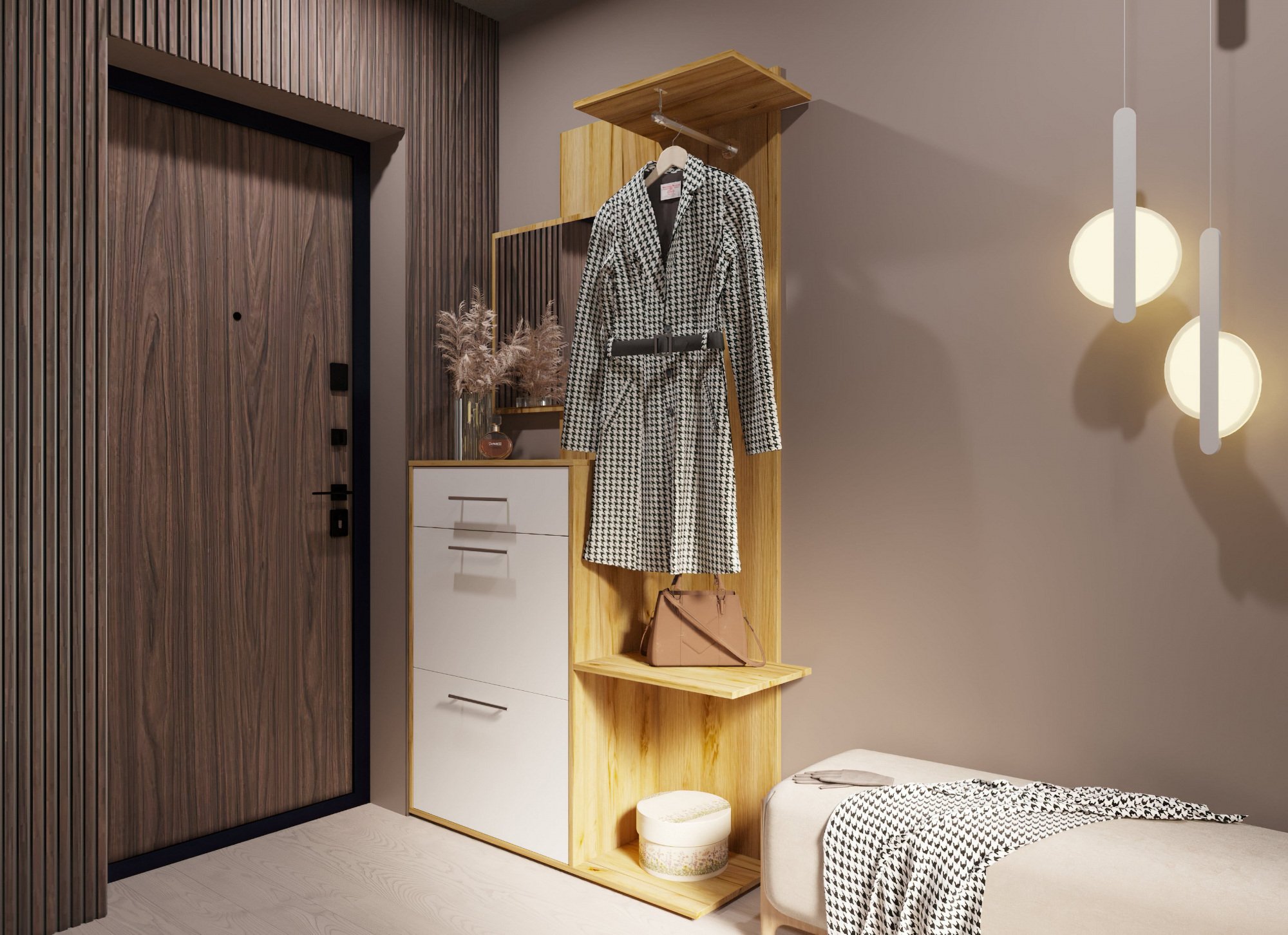 LUXE STUDIO — це найбільший виробник надійних корпусних меблів високої якості. Використовуючи новітні технології і сучасні матеріали нами розроблені десятки гармонійних дизайнів корпусних меблів, шаф і шаф-купе, серед яких ви, без сумніву, зможете підібрати варіант, який стане дійсною прикрасою саме вашого інтер'єру. Передпокій - це перше, що ми бачимо, увійшовши в будинок. Саме ця частина житла створює перше враження про нього і його господарів. Акуратний передпокій, в якому немає зайвих речей, а взуття та верхній одяг на своїх місцях, завжди виглядає гідно і створює відчуття комфорту. Katrin (Кетрин) - фукціональний і компактний комплект для передпокою з м'яким лаконічним дизайном. У цьому передпокої є все необхідне для акуратного розміщення верхнього одягу та інших речей. Характеристики та розміри: Розміри (ШхГхВ): 1200х366х2130 мм Ящики для взуття відкидні - 2шт Висувна шухляда - 1 шт Полиці - 2 шт Мікроліфт для одягу Ручки меблеві, покриття алюміній Основний матеріал - ДСП Можливе виготовлення в тільки в правобічному Комплект проводиться в готових рішеннях * Виробник залишає за собою право без повідомлення споживача вносити зміни в конструкцію виробів для поліпшення їх технологічних та експлуатаційних параметрів. Вид виробів може незначно відрізнятися від представлених на зображеннях.