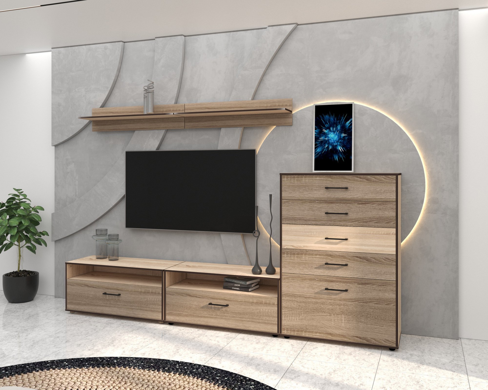 Описание Вітальня Franco/Франко Комплект 2, Готові кольорові рішення Дуб Крафт білий